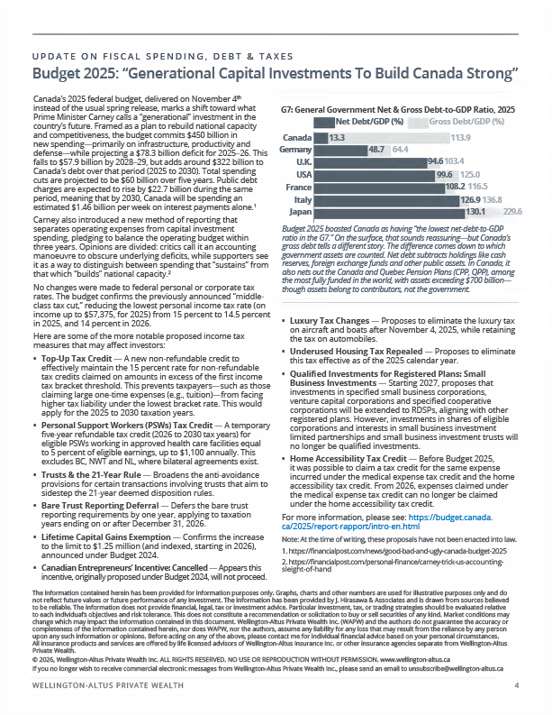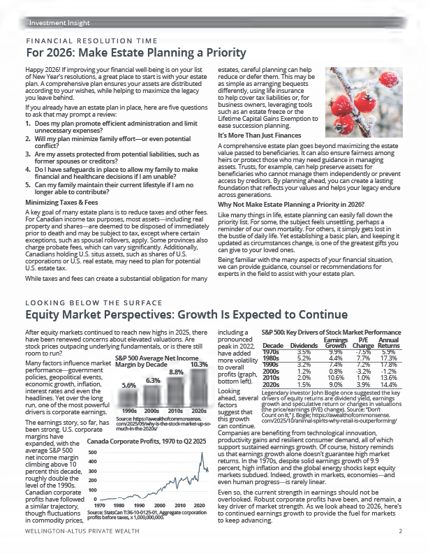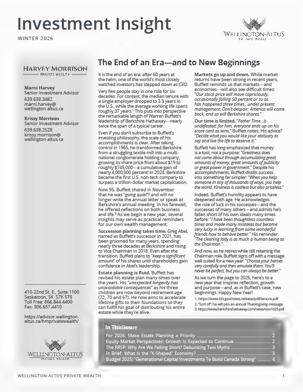 The information contained herein has been provided for information purposes only. The information has been drawn from sources believed to be reliable. Graphs, charts and other numbers are used for illustrative purposes only and do not reflect future values or future performance of any investment. The information does not provide financial, legal, tax or investment advice. Particular investment, tax, or trading strategies should be evaluated relative to each individual’s objectives and risk tolerance. This does not constitute a recommendation or solicitation to buy or sell securities of any kind. Market conditions may change which may impact the information contained in this document.  Wellington-Altus Private Wealth Inc. (WAPW) does not guarantee the accuracy or completeness of the information contained herein, nor does WAPW assume any liability for any loss that may result from the reliance by any person upon any such information or opinions.  Before acting on any of the above, please contact your financial advisor.