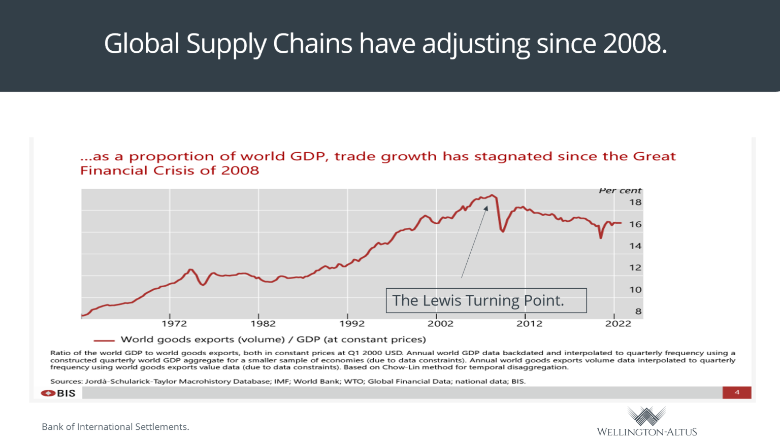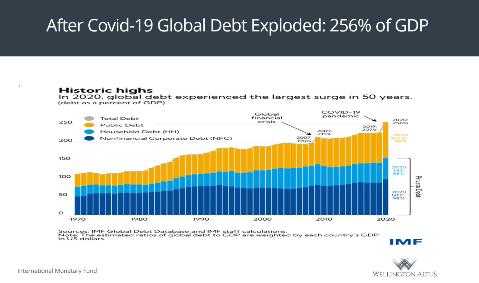 The longer-term inflationary risk today results from fiscal policy rather than wages. These fiscal inflationary pressures are caused by the desire of some to implement policies, for example, to reduce income inequality or greenhouse gases, irrespective of their effects on inflation. Can these policies be implemented in a non-inflationary way? As Nobel Prizewinning economist, Thomas Sargent theorized, “permanent high inflation is everywhere and always a fiscal phenomena.⁵” With the IMF reporting that global debt has reached 256%, one wonders how long the global economy can withstand high-interest rates.