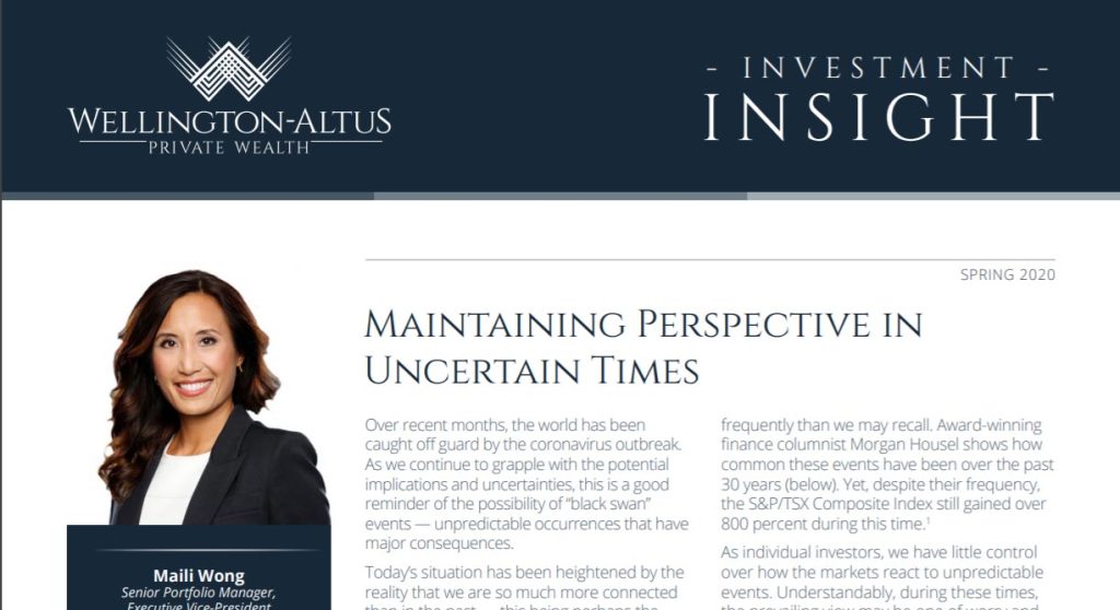 Managing Perspective in Uncertain Times Over recent months, the world has been caught off guard by the coronavirus outbreak. As we continue to grapple with the potential implications and uncertainties, this is a good reminder of the possibility of “black swan” events — unpredictable occurrences that have major consequences. Today’s situation has been heightened by […]