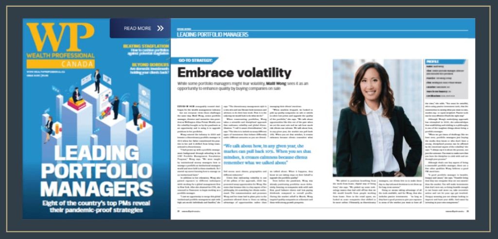 Embracing volatility While some portfolio managers may fear volatile times, Maili Wong sees them as an opportunity to buy companies on sale and enhance quality This issue of Wealth Professional Magazine spotlights 8 of the country’s leading portfolio managers and their pandemic-proof strategies. Click here to read this 2 page article on Maili […]