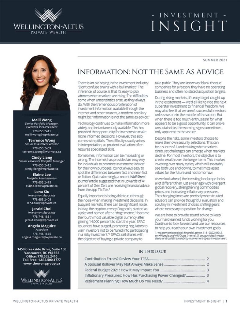 Information: Not the Same As Advice With the tremendous amount of investment information available through the internet and other sources, it’s important to recognize that “Information is not the same as advice.” Technology continues to make information more widely and instantaneously available. This has provided the opportunity for investors to make more informed decisions. […]