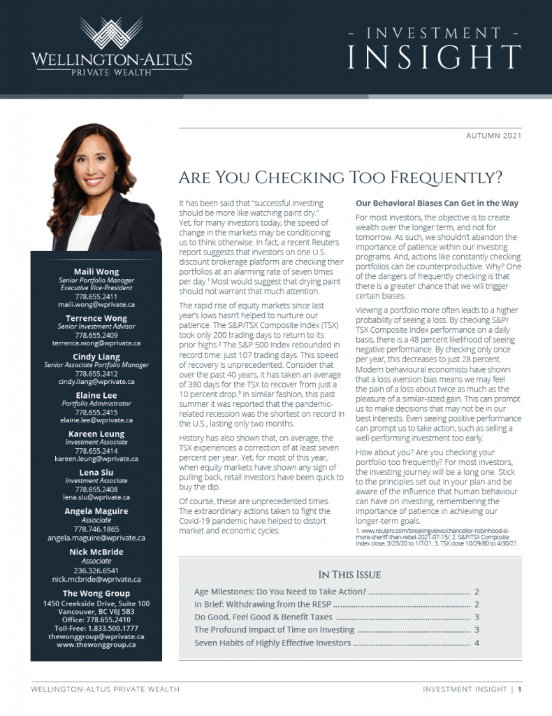 Are you Checking too Frequently? It has been said that “successful investing should be more like watching paint dry.” Yet, for many investors today, the speed of change in the markets may be conditioning us to think otherwise. In fact, a recent Reuters report suggests that investors on one U.S. discount brokerage platform are […]