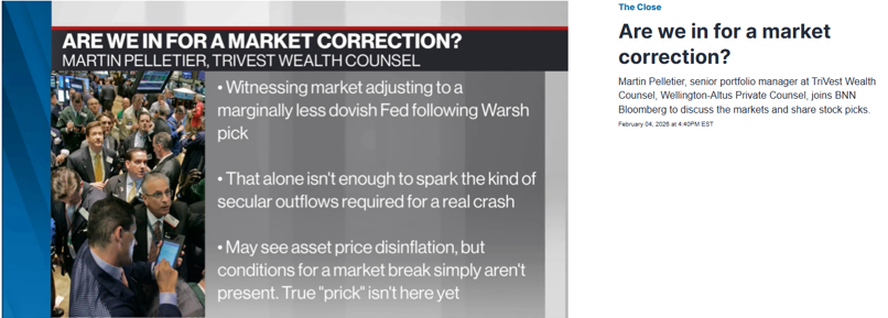 By contrast, a smaller group of companies has been rewarded and in some cases quite decisively. Names such as Meta Platforms Inc., Nvidia Corp., Broadcom Inc., Intact Financial Corp. and Toromont Industries Ltd. delivered what investors are actively seeking: immediate monetization, visible cash flow and a clear, credible link between capital investment and returns. The market has shown a willingness to pay up for certainty when that is paired with balance‑sheet strength. The takeaway is straightforward: in an uncertain world, people crave certainty and hit the sell button when they don’t get it.