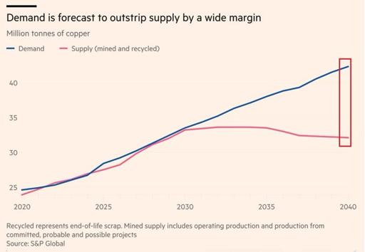 On the equity side, we exited our silver position with a substantial profit (roughly doubling our investment within the fund) and reinvested into gold and BHP Group, which is the world’s largest and most reputable copper producer. We are quite bullish on copper as the world economy is projected to face a copper deficit of 10 million tonnes by 2040, equivalent to roughly 33 per cent of current global demand.
