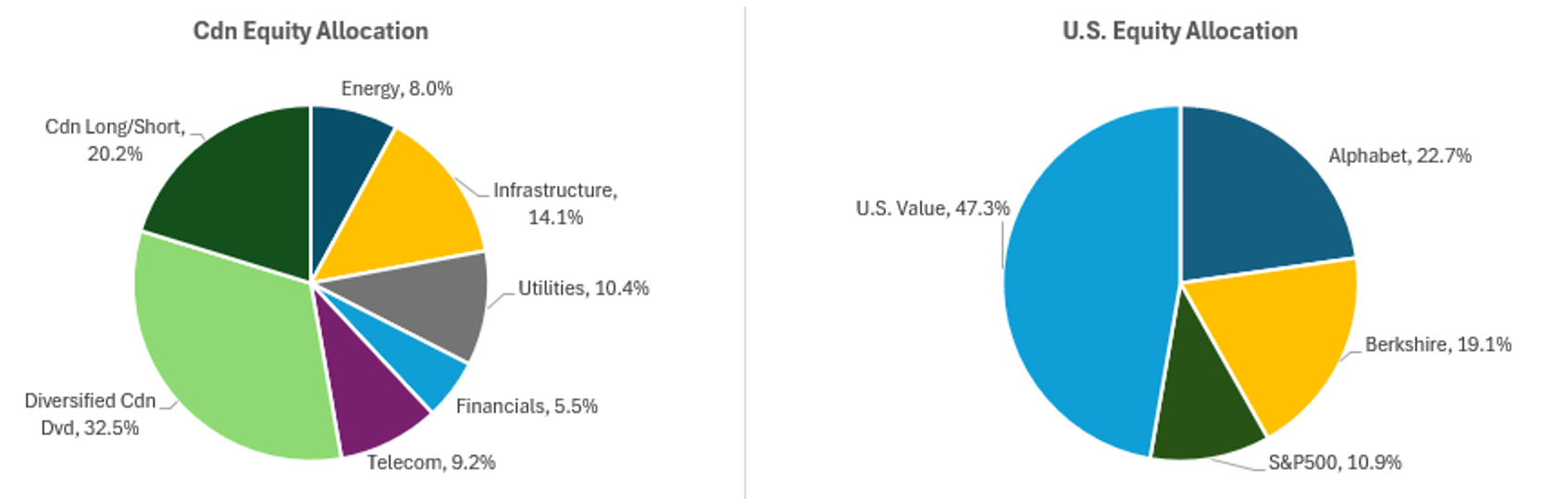 Our barbell allocation — structured notes replacing fixed income, Canadian dividend exposure, tactical trades in gold, and U.S. equities like Berkshire Hathaway and Google — has driven performance while managing risk.